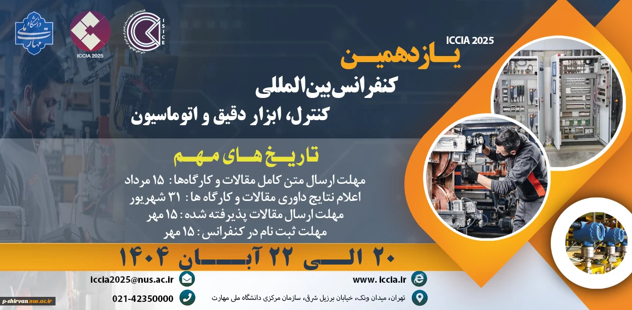 امتیاز دهید : یازدهمین کنفرانس بین المللی کنترل، ابزار دقیق و اتوماسیون 2 سهشنبه 4 شهریور 1404 ساعت 6:35