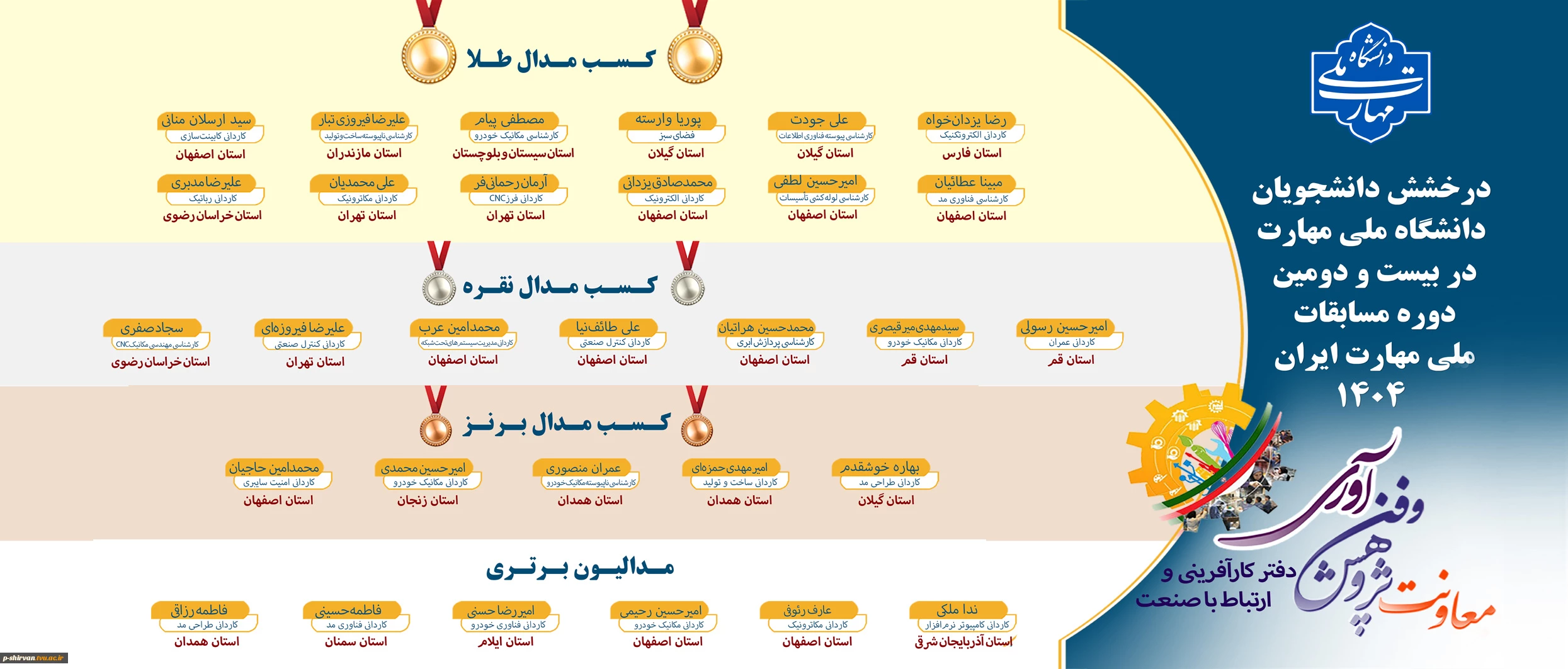 امتیاز دهید : درخشش دانشجویان دانشگاه ملی مهارت در بیست و دومین مسابقات ملی مهارت ایران ۱۴۰۴ 2 دوشنبه 19 آبان 1404 ساعت 8:18